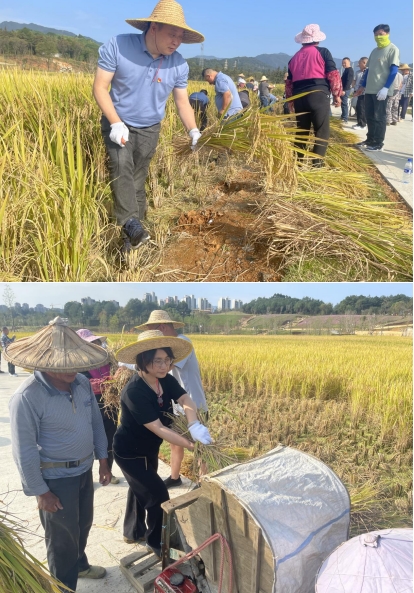 秋意漸寒,稻谷飄香。為深入貫徹習(xí)近平總書記關(guān)于實(shí)施鄉(xiāng)村振興戰(zhàn)略和糧食安全的重要論述,以學(xué)促干,推動學(xué)習(xí)貫徹習(xí)近平新時(shí)代中國特色社會主義思想主題教育見行見效,2023年117上午,市政集團(tuán)黨支部組織全體黨員干部龍州濕地項(xiàng)目開展“傳承蘇區(qū)好作風(fēng) 四下基層促發(fā)展”主題黨日活動,全面助力稻谷收割工作。