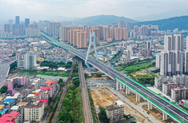 龍巖大道高架橋2013年9月開(kāi)工建設(shè),2020年10月建成通車。該項(xiàng)目地面道路長(zhǎng)3395米,寬78米;高架橋部分長(zhǎng)2329米,標(biāo)準(zhǔn)段寬26米,含一座(190+150)米的獨(dú)塔雙索面斜拉橋,斜拉橋?qū)?4.2米;葫蘆溪分洪工程長(zhǎng)667米,標(biāo)準(zhǔn)段結(jié)構(gòu)7.5×3.9米,總投資24億元。