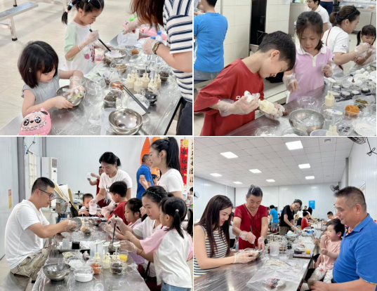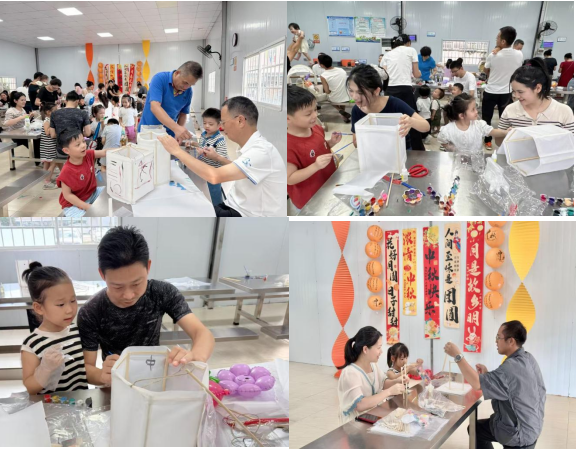 活動現(xiàn)場,22組家庭化身為“美食工匠”,開啟了冰皮月餅DIY之旅,從揉面、包餡到壓模,親子間的默契協(xié)作下,一枚枚印有“平山自來水廠”“城南水塔”“水泥船泵房”等公司發(fā)展史上標(biāo)志性建筑物圖案的月餅在掌心悄然成型。在活動的另一側(cè),二十余盞創(chuàng)意燈籠正悄然點亮,職工家庭以公司發(fā)展歷程為靈感,利用材料包中的竹篾、彩筆等素材,設(shè)計出“惠東供水60周年”“中秋快樂”等特色燈籠,將對企業(yè)發(fā)展的美好祝福融入其中。最終,所有家庭自制的月餅和燈籠作為活動紀(jì)念品被帶回家中,更成為傳遞企業(yè)溫情的獨特載體。